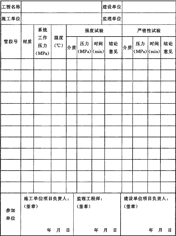 C.0.2 消防给水及消火栓系统试压记录应由施工单位质量检查员填写,监理工程师(建设单位项目负责人)应组织施工单位项目负责人等进行验收,并应按表C.0.2填写。
