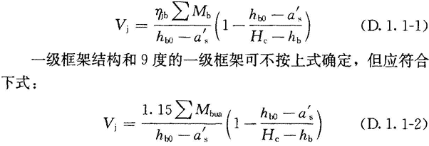 D.1.1 一、二、三级框架梁柱节点核芯区组合的剪力设计值,应按下列公式确定: