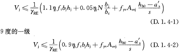 D.1.4 节点核芯区截面抗震受剪承载力,应采用下列公式验算:
